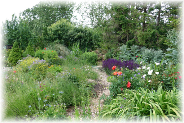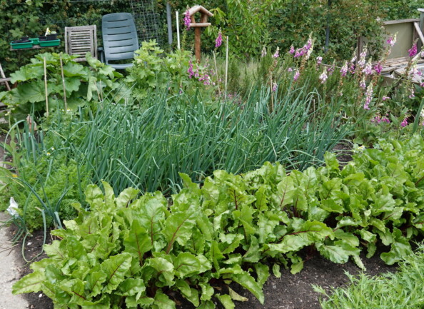 Bloementuin bij de ingang van het tuinencomplex van Tuinvereniging Nesserlaan.